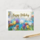 Postal Feliz Cumpleaños Acuarela Flores de Tulipán Abstra