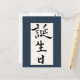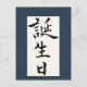 Un bello desplazamiento japonés con la caligrafía kanji para el cumpleaños y la palabra Happy delante. En una textura de "seda cruda" en una profunda sombra de verde azulado, este diseño asombroso es la tarjeta de cumpleaños personalizado perfecta. Añadir texto, cambiar diseño y fondo.