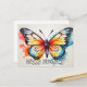 Esta única tarjeta de feliz cumpleaños presenta una ilustración de una mariposa flotante. Por favor, siéntase libre de ajustar el texto en el reverso de esta tarjeta.