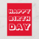 Feliz cumpleaños, tarjeta postal roja blanca moderna y audaz