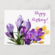 Postal Feliz cumpleaños bonito crocus morado amarillo flo