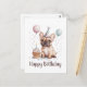 Ilustración de cumpleaños de Bulldog Francés lindo con perros disfrazados para celebrar. ¡Perfecto para amantes de los perros, dueños de Bulldogs Franceses y cualquiera que adore regalos o decoraciones con temática de mascotas!