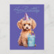 Feliz Cumpleaños Caniche con Sombrero de Fiesta y Torta de Cumpleaños