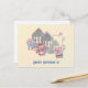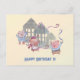 Desea un Feliz Cumpleaños con esta tarjeta de cumpleaños de los Tres Cerditos y sus respectivas casas. El texto Feliz Cumpleaños es editable a su gusto.