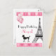 Postal Feliz cumpleaños corazón rosado Torre Eiffel