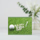 Postal Feliz cumpleaños de golf con pelota y tee de golf