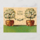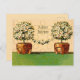 La postal de cumpleaños feliz de la época de Vintage/Victoriana cuidadosamente restaurada a la mejor calidad. Muestra dos macetas floridas unidas por una guirnalda de flores. Se deja en blanco para tu mensaje personal.