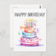 Esta linda tarjeta postal presenta una colorida ilustración de un pastel festivo de cumpleaños. Este saludo de cumpleaños sería maravilloso para amigos, familiares y compañeros de trabajo.