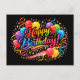 Celebre con color con esta alegre tarjeta postal de cumpleaños que presenta tipografía de escritura cursiva de arcoíris en negrita, globos brillantes y acentos de confeti animados. Los colores vívidos y el diseño festivo lo hacen perfecto para enviar deseos de cumpleaños, saludos de fiesta, notas de agradecimiento o mensajes alegres. Una tarjeta postal divertida y animada que agrega alegría instantánea de cumpleaños.