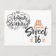 Una linda tarjeta de cumpleaños dulce dieciséis. Hecho en escritura con un pastel en la parte delantera.