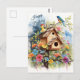 Postal Feliz Cumpleaños Floral Casa de Pájaros y Pájaros