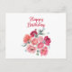 Postal Feliz Cumpleaños Flores Acuarela Rojas y Rosadas