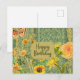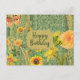 Postal Feliz Cumpleaños Flores Amarillas y Naranjas Vinta