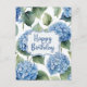 Postal Feliz cumpleaños flores de Hortensia Azul Acuarela