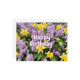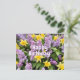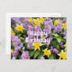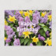 Postal Feliz cumpleaños flores de lila y narcisos amarill