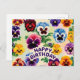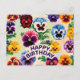Postal Feliz Cumpleaños Flores de Pensamiento Vintage