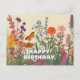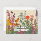 Postal Feliz cumpleaños flores silvestres, mariposas