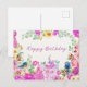 Postal Feliz Cumpleaños Flores Vibrantes Acuarela