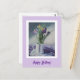 Postal Feliz cumpleaños, flores violetas púrpura pintando