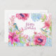 Postal Feliz Cumpleaños Flores y Pájaros Vibrantes Acuare