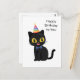 Postal Feliz cumpleaños, gato negro con Gorra Fiesta