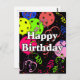 Postal Feliz Cumpleaños Globos de Pickleball Confeti Negr