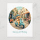 Postal Feliz cumpleaños Goldendoodle Dog Riding Scooter