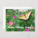 Postal Feliz cumpleaños, hermosas flores de mariposa