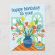 Envía un saludo de cumpleaños alegre con esta ilustración hecha a mano de un jarrón de flores coloridas. ¡Personaliza esta tarjeta con tu propio texto en el anverso y reverso! Haz clic en “Personalizar” arriba para editar el texto. Luego haz clic en "editar usando la herramienta de diseño" para ajustar las fuentes, colores y ubicaciones.