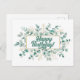 Postal Feliz Cumpleaños Hojas de Eucalipto Verde y Dorado