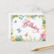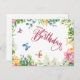 Postal Feliz Cumpleaños Hojas Tropicales, Flores, Maripos