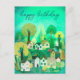 Postal FELIZ CUMPLEAÑOS Ilustración de pueblo rural lindo