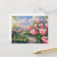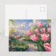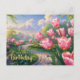 Postal Feliz cumpleaños jardín de tulipanes rosados en pr