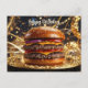 Postal Feliz Cumpleaños Juicy Hamburger en el Plato
