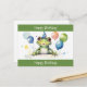 Sombrísima rana verde y caprichosa de cumpleaños. Globos rojo, verde y azul.