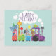 Postal Feliz cumpleaños lindo zoológico y animales de tre