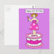 Postal Feliz cumpleaños media dama parada en un pastel