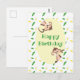 Postal Feliz Cumpleaños Mono Hoja Tropical de Plátano Pel