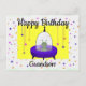 Esta postal de cumpleaños para un nieto tiene mi dibujo digital de un platillo volador morado con un espacio verde alienígena dentro. El espacio ajeno está en un fondo de estrellas coloridas con estrellas colgantes a cada lado. Puede cambiar el texto para que esta postal sea adecuada para cualquier persona. Otras tarjetas de cumpleaños están en mi feliz colección de cumpleaños.