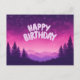 Postal Feliz cumpleaños noche estrellada, montañas, bosqu