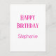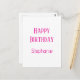 Postal Feliz Cumpleaños Nombre Personalizado Blanco Rosa