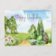 Postal Feliz Cumpleaños Paisaje Natural y Flores de Marga