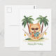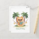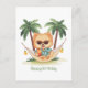 Ilustración adorable de un perro en una playa con camisetas hawaianas. Perfecto para padres de perros o amantes de las mascotas para el verano o unas vacaciones.