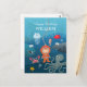 Esta linda postal de cumpleaños feliz presenta a un valiente niñito buceador explorando un mundo submarino. Está rodeado por varios animales submarinos: pulpo, tiburón, cangrejo, medusas, corales. Todos los animales acuáticos son muy amables y sonrientes. Gran tarjeta para enviar con ocasión del cumpleaños del niño, especialmente si el niño está interesado en la vida bajo el agua.