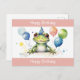 Postal Feliz cumpleaños rana verde linda con globos