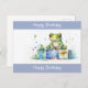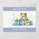 Postal Feliz cumpleaños rana verde linda con regalos envu