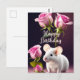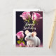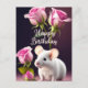 Postal Feliz Cumpleaños Ratón Bonito con Rosas Rosadas