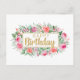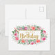 Postal Feliz Cumpleaños Rosas Rosadas Acuarela