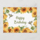Postal Feliz Cumpleaños Sunflowers y Pájaros Acuarela