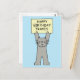 Un personalizado de un gatito gris esponjoso sostiene un cartel de color limón que dice 'Feliz cumpleaños Travis'.